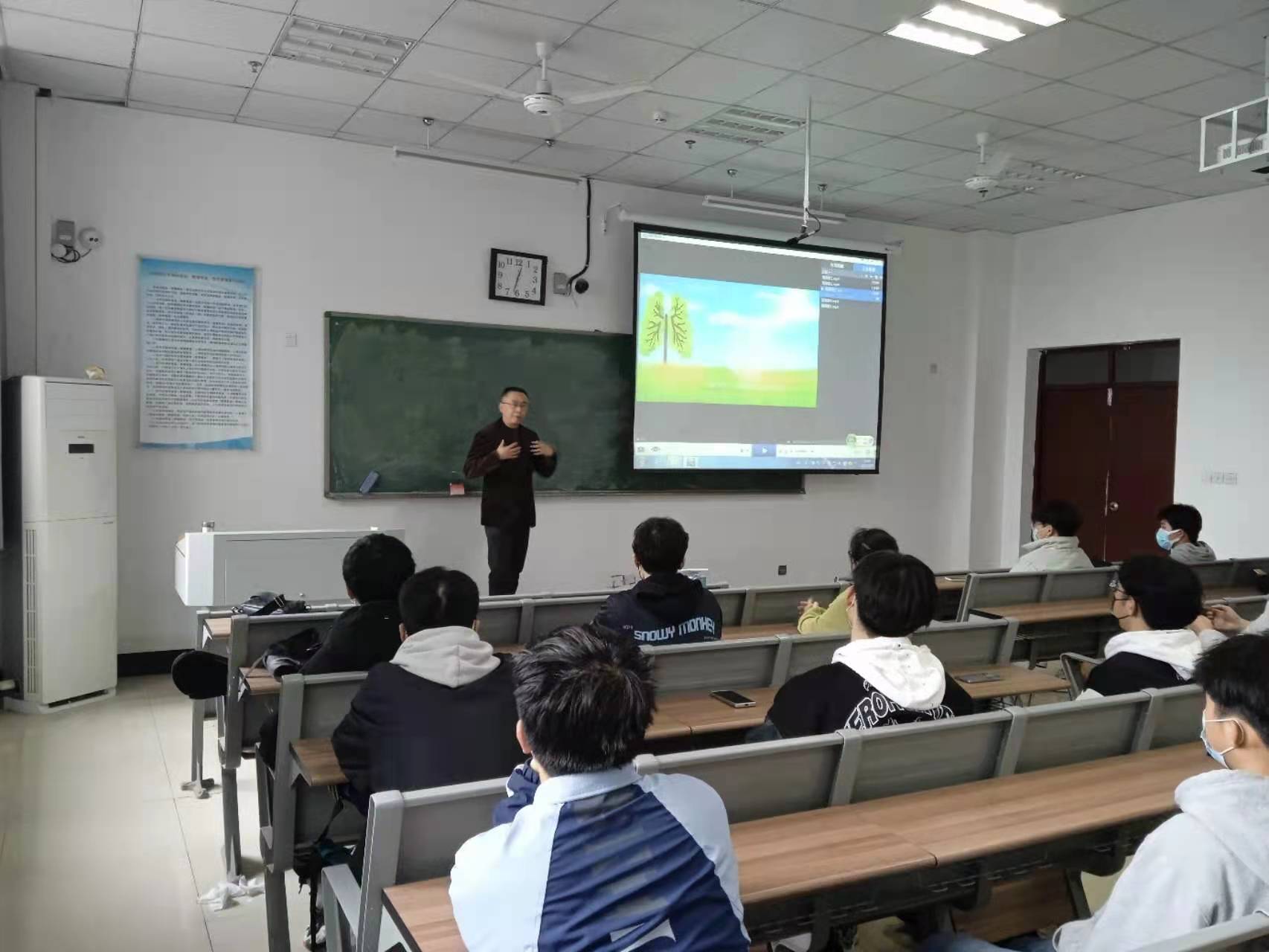 主治医师李昂采用视频和理论相结合的方式,用通俗易懂的语言,就结核病的特征、预防和控制、学校结核病日常管理及应急处置等方面作了详细讲解。李昂医师提醒学生,春季是肺结核易发季节,若出现咳嗽、咳痰、咯血或痰里带血丝肺结核等可疑症状,应立即就医;教室、寝室要定时开窗通风,保持室内空气新鲜;要养成健康的生活方式,加强体育锻炼,生活要有规律,注意饮食营养和睡眠充足,增强机体抵抗能力。