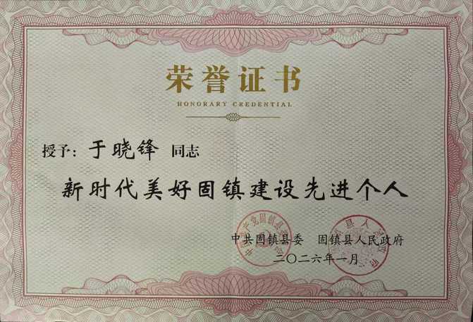 2026年1月27日,蚌埠市固镇县委、县政府对“新时代美好固镇”建设先进集体和先进个人进行了表彰。bat365在线中国官网登录入口材料与化学工程学院副教授于晓锋博士被授予2025年度“新时代美好固镇”建设先进个人荣誉称号,以表彰其在推动地方产业技术创新与校企融合发展中做出的突出贡献。