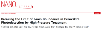 尹延峰长期从事卤化物钙钛矿载流子的光电转换动力学研究。近期,他以第一作者身份在NanoLetters(中国科学院化学类一区,影响因子9.1,Top期刊)、JACSAu(中国科学院一区,影响因子8.7,Top期刊)两大国际权威期刊发表重要成果。研究围绕高压处理技术对钙钛矿薄膜的结构与性能调控展开,通过高压处理,成功优化材料晶界结构、强化内部氢键作用,显著提升了钙钛矿材料的载流子输运能力与环境稳定性,为高性能、高稳定钙钛矿光电器件的研发提供了全新技术路径,相关成果具有重要的学术价值与应用前景,也直接助力bat365官网电子信息学科在前沿光电材料与器件方向上的特色发展。